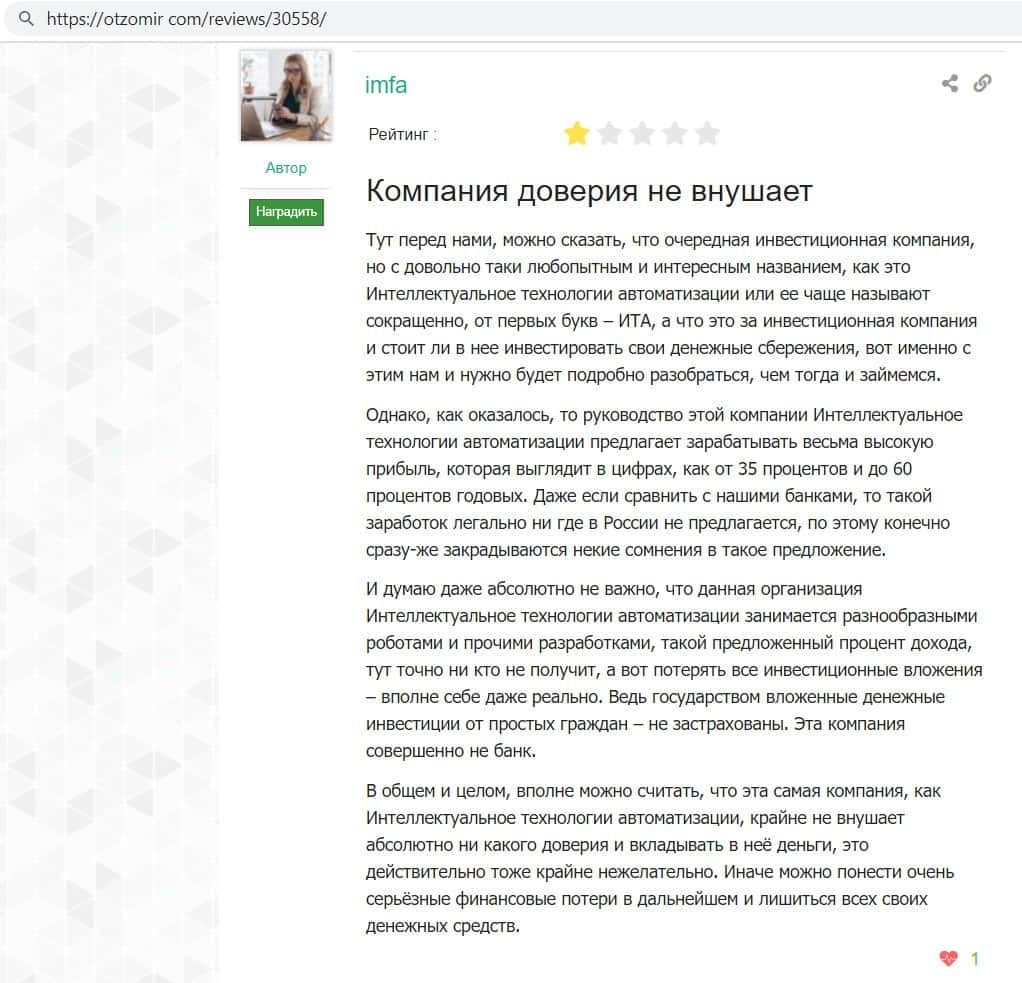 otzomir com - сайт с отзывами о аферистах ИТА Лаб
