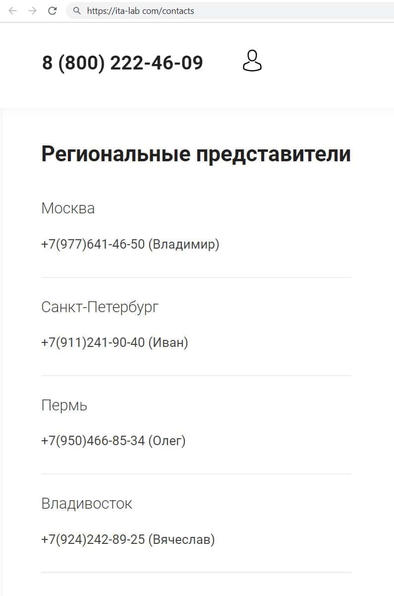Мошенническая компания ИТА Лаб на своём сайте указала номера телефонов, с которых она звонит клиентам и разводит их на инвестирование в свой лохотрон. Номера жуликов: