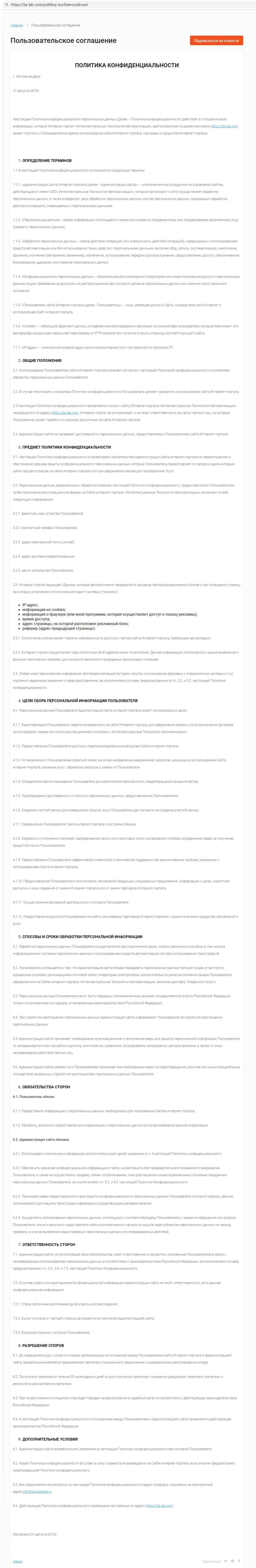 Так же вашему вниманию мы представляем полное клиентское соглашение конторы кидал ITA Lab, для более подробного ознакомления со всеми пунктами данного документа.