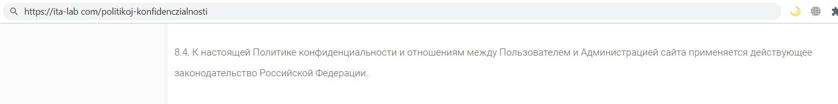 В данном пункте контора жуликов ИТА Лаб указала, что к данному документу применяются законодательство Российской Федерации, хотя зама компания является незаконной.