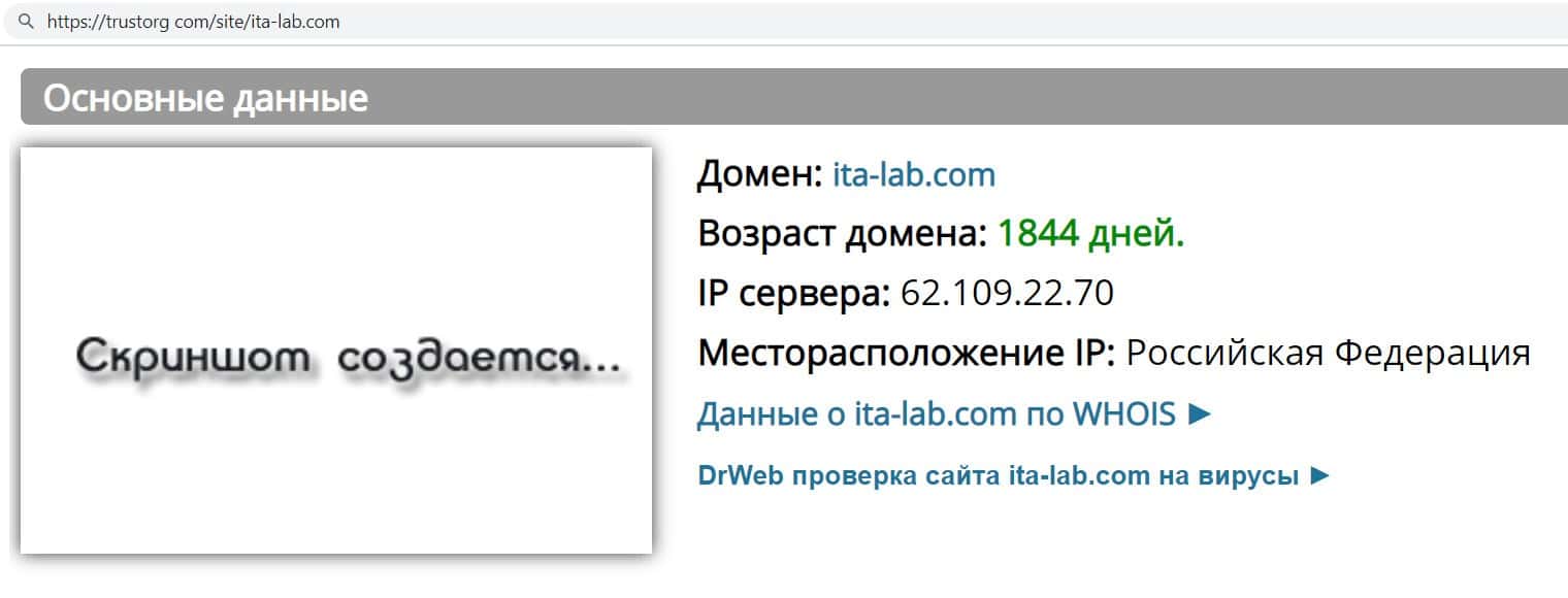 - Информация о возрасте сайта кидал ITA Lab