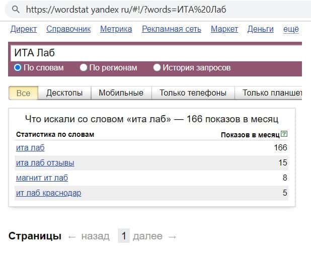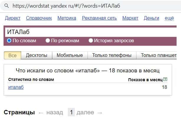 wordstat yandex ru - количество брендовых запросов в Яндексе