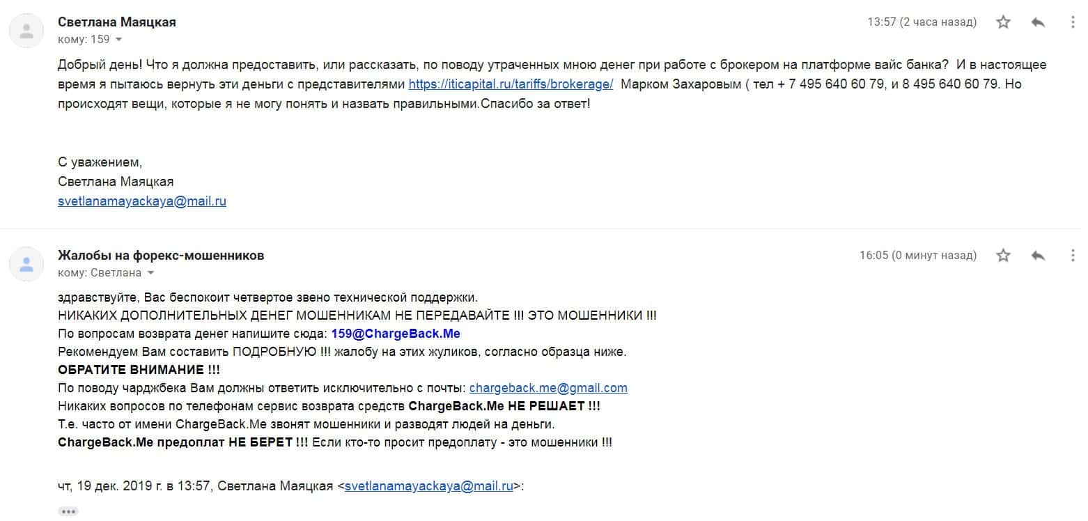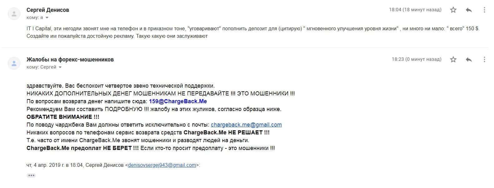 Ниже предлагаем увидеть скрин письма с жалобой на мошенническую организацию ИТИ Капитал, которая работает в одной связке с обманщиками Максвелл ФМ.