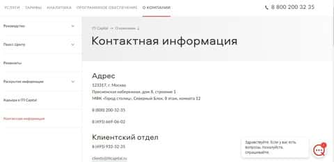 - почты info@iticapital ru, clients@iticapital ru, support@iticapital ru, trade@iticapital ru;