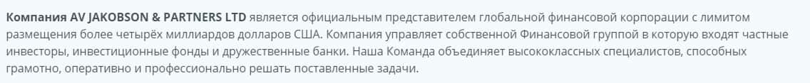 Официальным юридическим лицом, которое работает с клиентами от имени жуликов Изра Инвест является AV JAKOBSON & PARTNERS LTD.