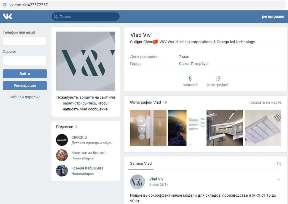 Указывает на то, что данный господин не является фейком некоторая информация в интернете, из которой ясна его предположительная деятельность в прошлом, а именно торговля осветительным оборудованием, что крайне далеко от каких-то лохотронов.
