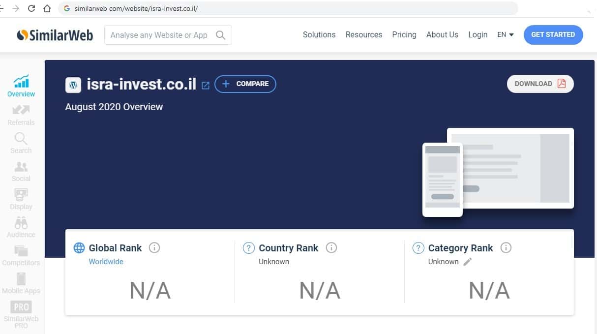 Сайт isra-invest co il плохой, поэтому по нему не показываются даже источники трафика. Это уже говорит о многом и можно понять, с кем мы имеем дело. Это аферисты.