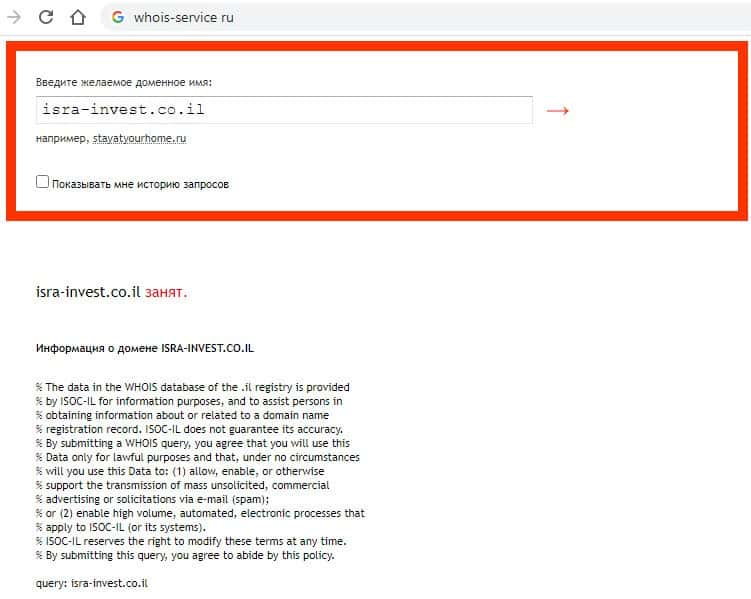 Анализ сайта isra-invest co il не смог определить, сколько существует домен мошенников Изра Инвест.