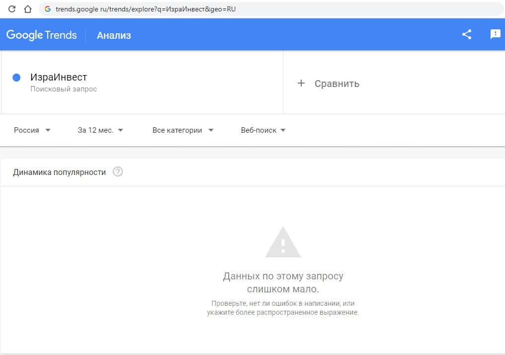 Третий запрос в гугл на английском языке "Isra-Invest" выдает результат в 0 показов в месяц, как и в двух предыдущих случаях. По такому запросу информацию не ищут.
