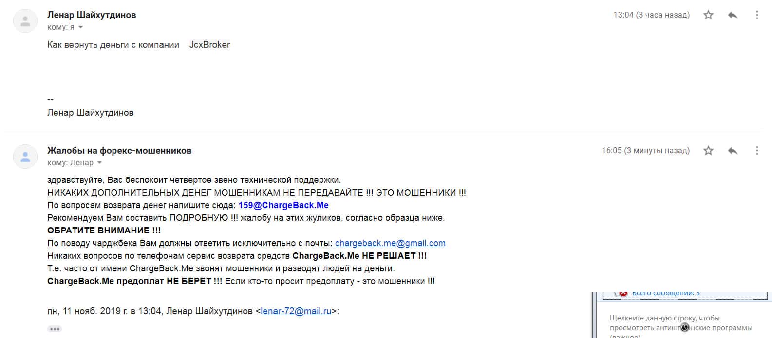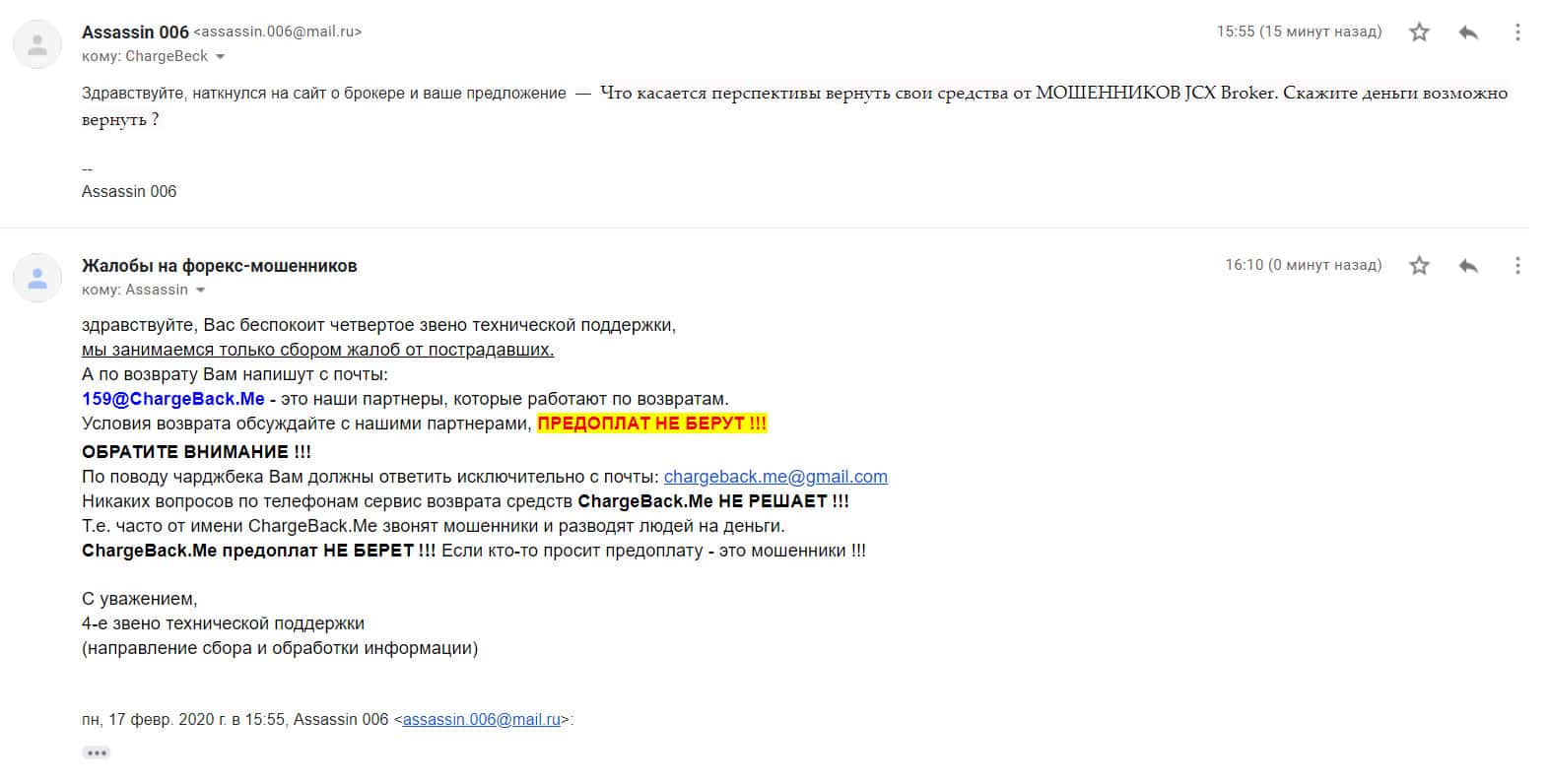 Что касается перспективы вернуть свои средства от МОШЕННИКОВ JCX Broker - напишите письмо на почту: [email protected]