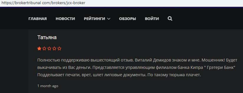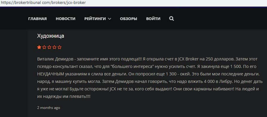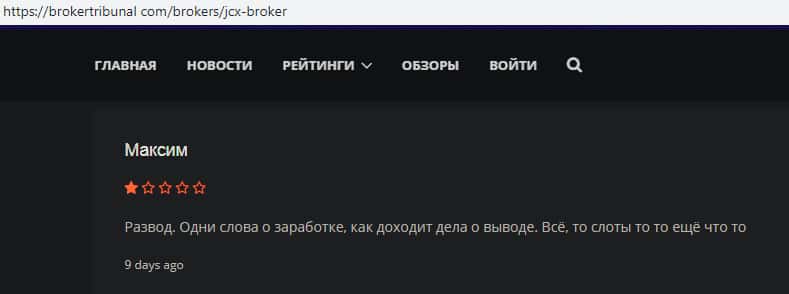 - Негативный отзыв о лохотроне JCX Broker с веб-сайта brokertribunal com