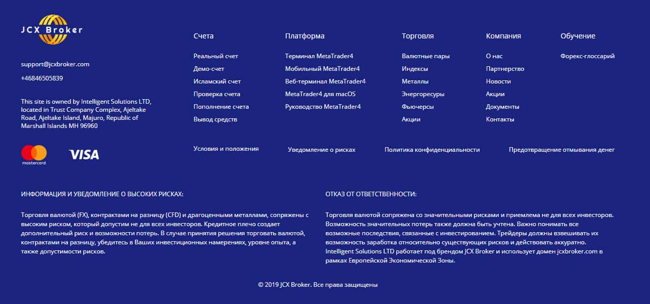 Завершается сайт у жулья ДжейСиИкс Брокер вполне ожидаемо, а именно информацией о том, что шулера JCX Broker отказываются за убытки наивной клиентуры, а так же ссылками на различные раздел сайта мошенников ДжейСиИкс Брокер. На изображении, расположенном ниже, вы можете увидеть окончание подвального сайта аферистов JCX Broker.
