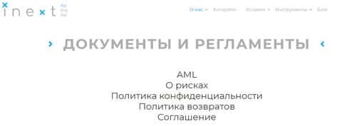 О лицензии или регулировании аферистов йНекст Трейд нигде на сайте упоминаний нет, а учитывая его внешний вид не тяжело догадаться, что их и нету, соответственно мошенники iNext Trade являются очередным лохотроном по разводу наивных пользователей, который не несет ответственности и не дает гарантий.