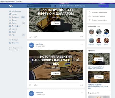 - Страницы лохотрона йНекст Трейд в социальных сетях