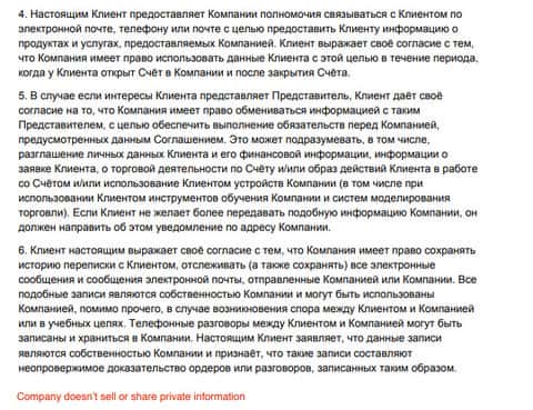 Далее мошенники iNext Trade заявляют о том, что они могут разглашать личную и персональную информацию клиентов и не нести ответственности за это. На изображении, расположенном ниже, вы можете увидеть данный раздел политики конфиденциальности аферистов йНекст Трейд.