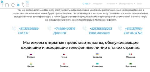 Под контакты аферисты iNext Trade создали отдельный раздел, в котором не поленились и добавили множество адресов, по которым шулеров йНекст Трейд обнаружить не удастся. Однако контакты, указанные на сайте аферистов iNext Trade мы перечислим ниже: