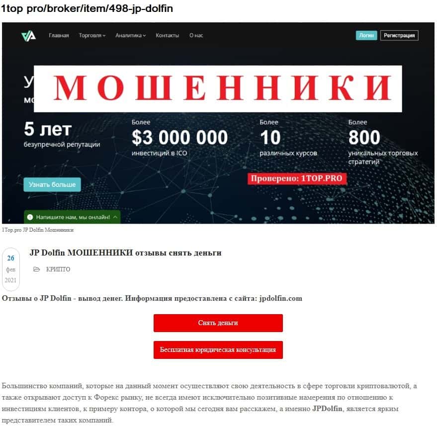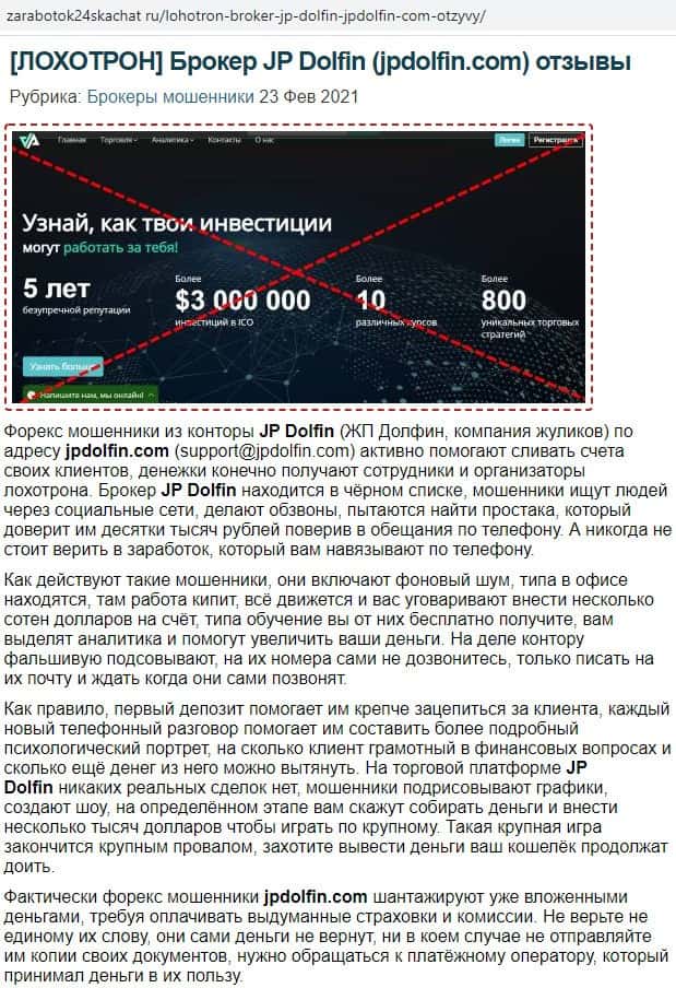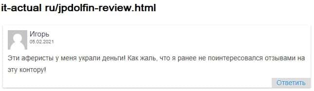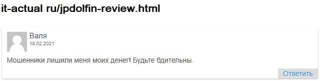 Отзывы о лохотроне JPDolfin на разных сайтах