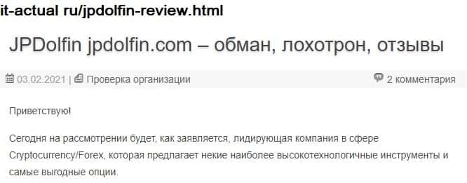 - Отзывы о лохотроне JPDolfin на разных сайтах