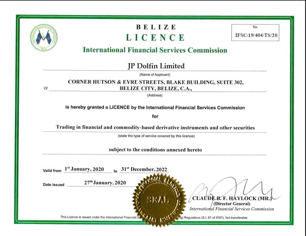 Судя по лицензии место своей регистрации мошенники ДжейПи Долфин указывают Бели - известное место обитание жуликов всех мастей.