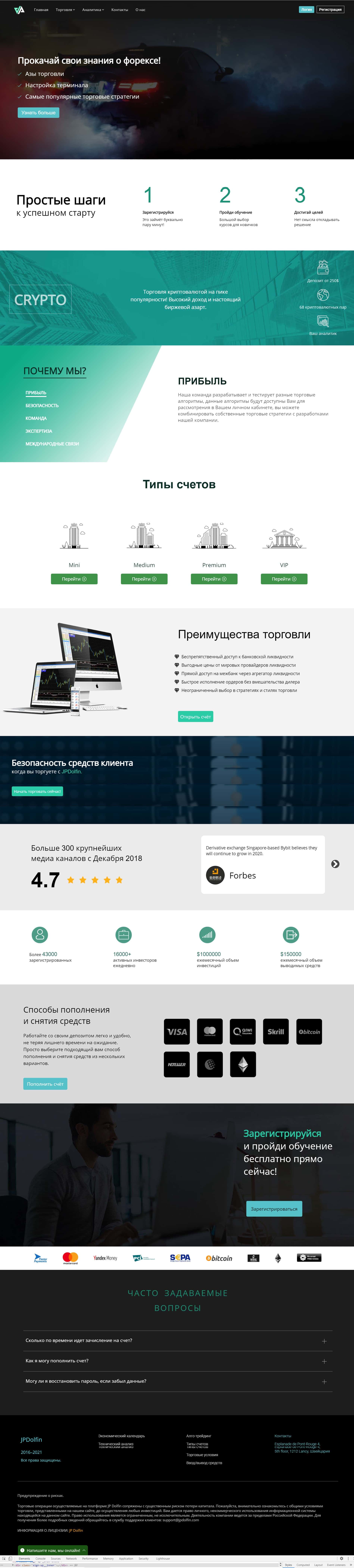 Главная страница сайта мошенников JPDolfin ничем не отличается от таких лохотронов - посредственный дизайн и минимум полезной информации для клиента.
