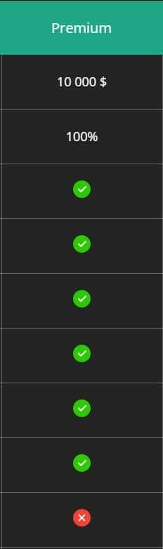 Третий тип счета, куда предлагают вкладывать деньги своим клиентам мошенники - это Premium. Тут минимальный депозит уже начинается от 10 000$.