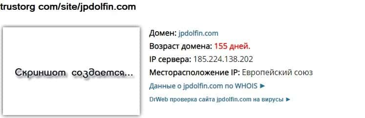 Чтобы там жулики jpdolfin com не рассказывали о том, какие они опытные и сколько находятся на рынке, а реальный срок существования их домена - 155 дней.