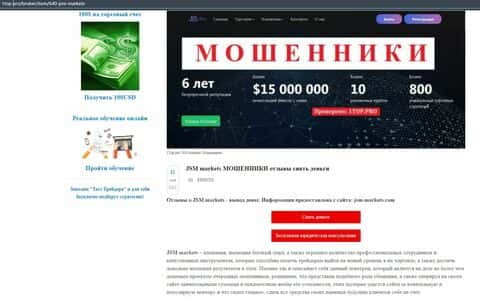 Еще в одной статье описывается, что мошенническая контора ДжэйЭсЭм Маркетс это никакой не лидирующий брокер, а обычная контора, которая разводит наивных лохов на деньги.