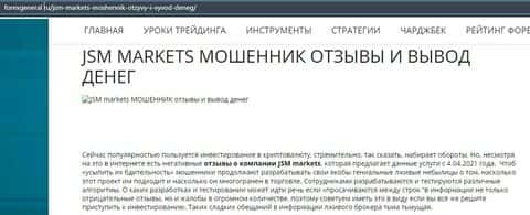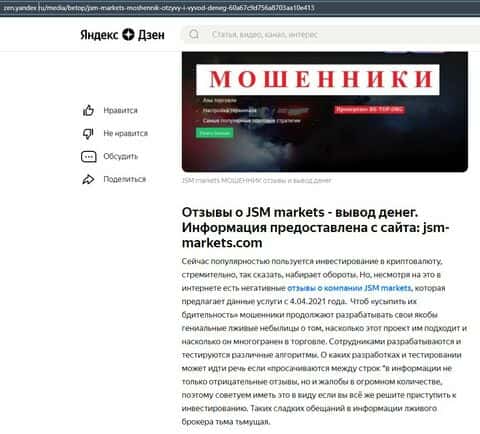 Еще одна статья посвящена лохотронской организации JSM Markets, где разоблачают их деятельность, так как они завлекают торговать как криптовалютой, так и на рынке Форекс.