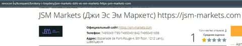 Далее представлена контактная информация мошеннической организации JSM Markets, где определенно можно найти пару номеров телефонов, электронную почту и адрес офиса:
