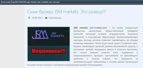 Ниже представлена статья про лохотронскую контору JSM Markets, где описывается, что это обыкновенные мошенники, которые заманивают своих жертв путем прозвона холодных баз.