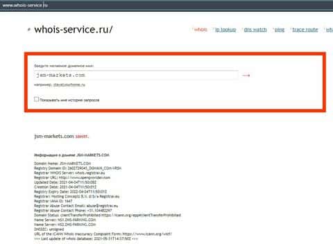 - О возрасте домена сайта jsm-markets com