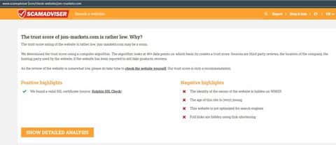 По поводу самого сайта конторы ДжэйЭсЭм Маркетс на портале scamadviser com есть некая информация касательно их ошибок, которые довольно опасны для пользователей.