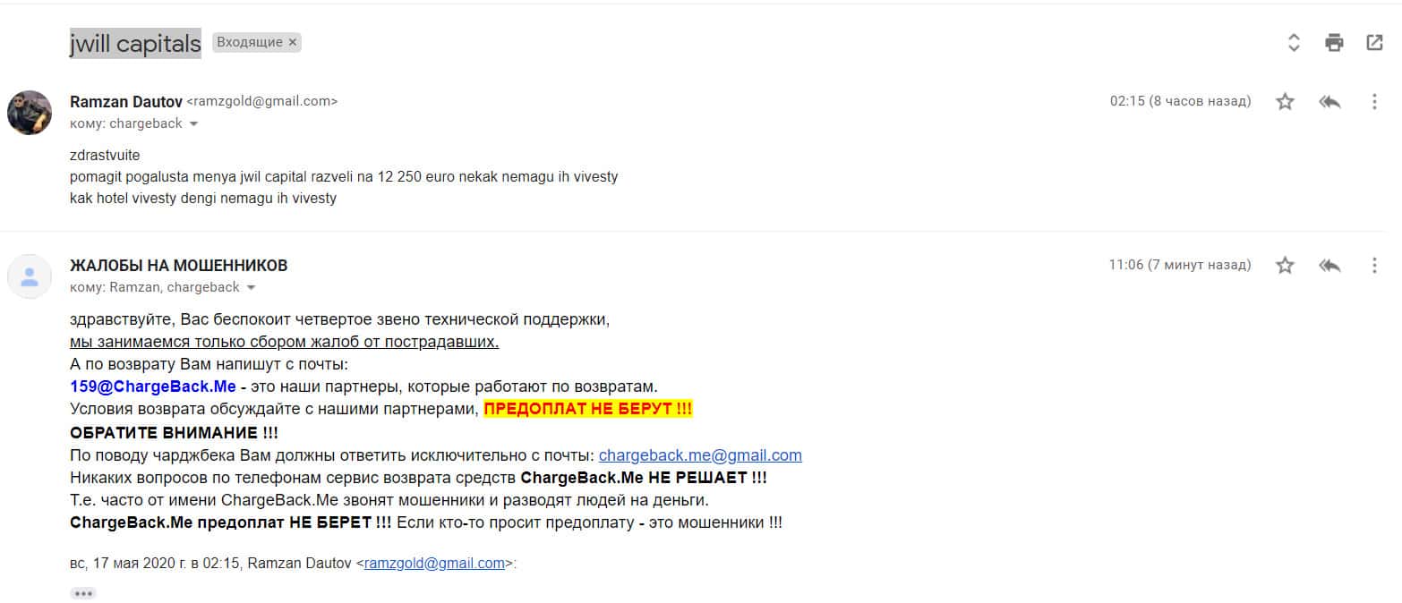 - Жалоба на скаммеров JwillCapital и Гет Капиталс
