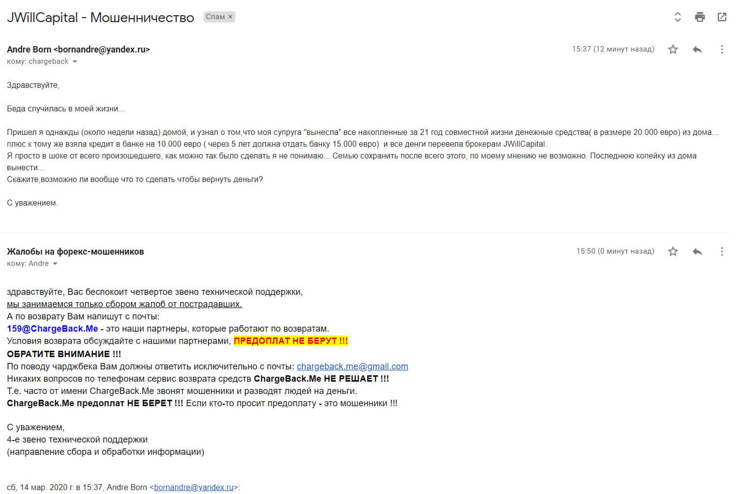 На публикации ниже можно ознакомится с очередной жалобой на мошенников в лице брокерской компании JwillCapital, которая лишила автора данного информационного материала несколько сотен евро и обо всем случившемся пострадавший пользователь глобально сети сообщил на емайл сайта-разоблачителя.