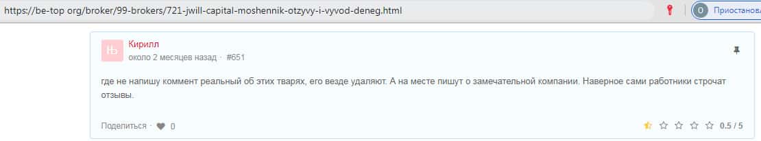 - Пользователь Кирилл о проблеме подмены реальных отзывов о брокере Джей Вилл Капитал в интернет