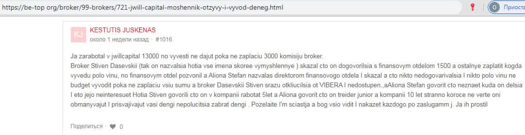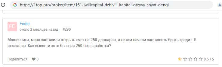 - Очередной пострадавший клиент Джей Вилл Капитал написал жалобу