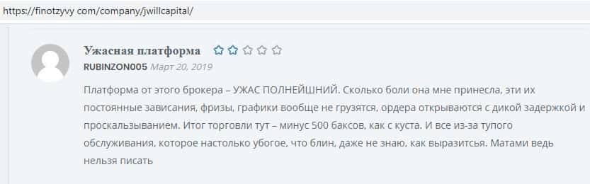 - Ужасная торговая платформа брокера JWillCapital привела к потере пятисот долларов трейдера robinzon005