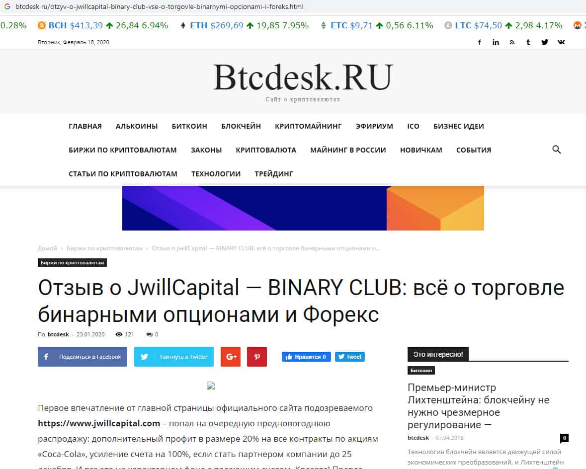 Мнение портала btcdesk ru о брокере JWillCapital: "мягко стелят, да спать жестко"