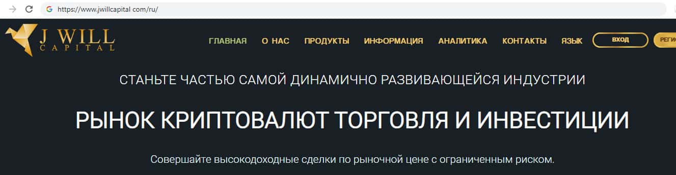 JWillCapital - аферисты и мошенники! Пользуясь недостаточными знаниями и доверчивостью пользователей сети Интернет, жулики из JWillCapital обманным путем овладевают денежными средствами своих клиентов, оставляя их ни с чем. Не поддавайтесь на лживые обещания мошенников из различных интернет проектов, подобных Джей Вилл Капитал, сулящих богатство!