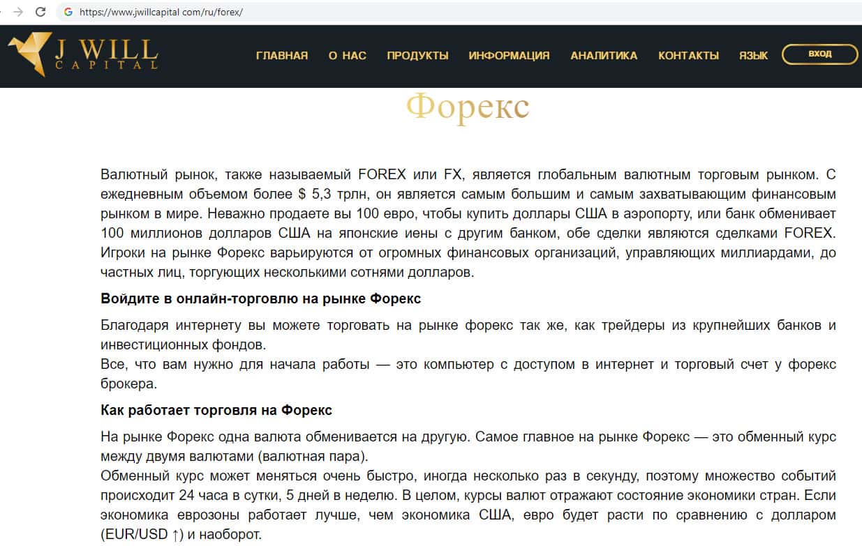 Основные понятия рынка форекс в неожиданном месте - в разделе "Продукты" портала Джей Вилл Капитал