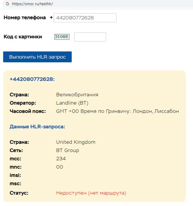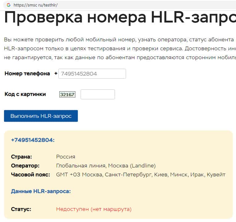 smsc ru - сервис проверки телефонного номера HLR-запросом