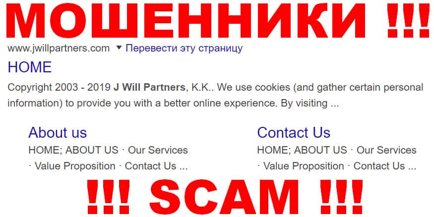 Мошеннический сайт Джей Вилл Партнерс криком кричит о том, что был сделан отечественными аферистами, даже если взять в расчёт то, что сам сайт якобы оформлен с претензией на западный уровень. На деле же в нём мы можем увидеть, что JWillPartners не заслуживает доверия и не заслуживает именно потому что орудует нелегально.