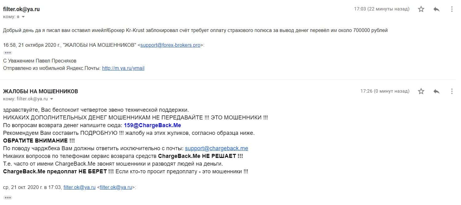 КР Траст - это кидалы, которые обворовывают клиентов, в том случае если они и Вас также обманули или делали попытки слить, то в таком случае оставьте электронный адрес в форме для обратной связи ниже, и с Вами установят связь.