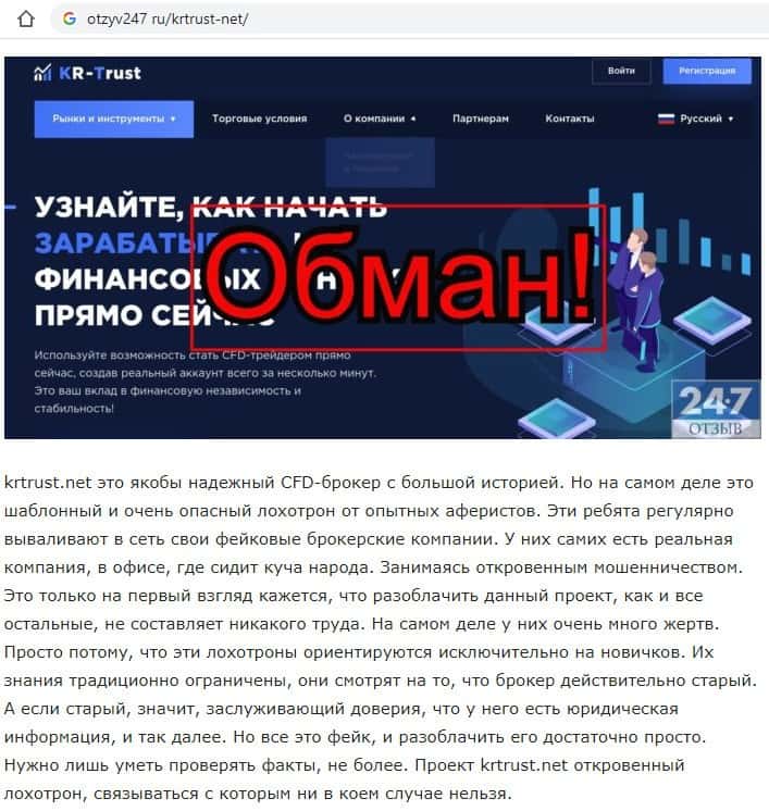 КР Траст - это обычный шаблонный лохотрон, который на просторах интернета сейчас штампуют просто тысячами. Поражают объемы, с которыми обманывают людей на деньги.