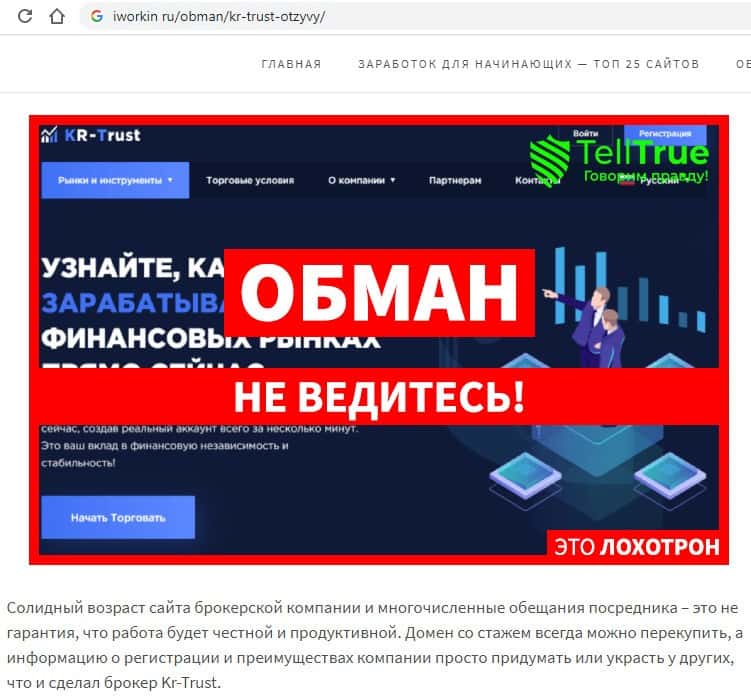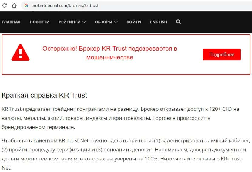 Многочисленные обещания посредника KRTrust Net - это тоже не гарантия того, что контора работает легально и честно. Скорее наоборот.