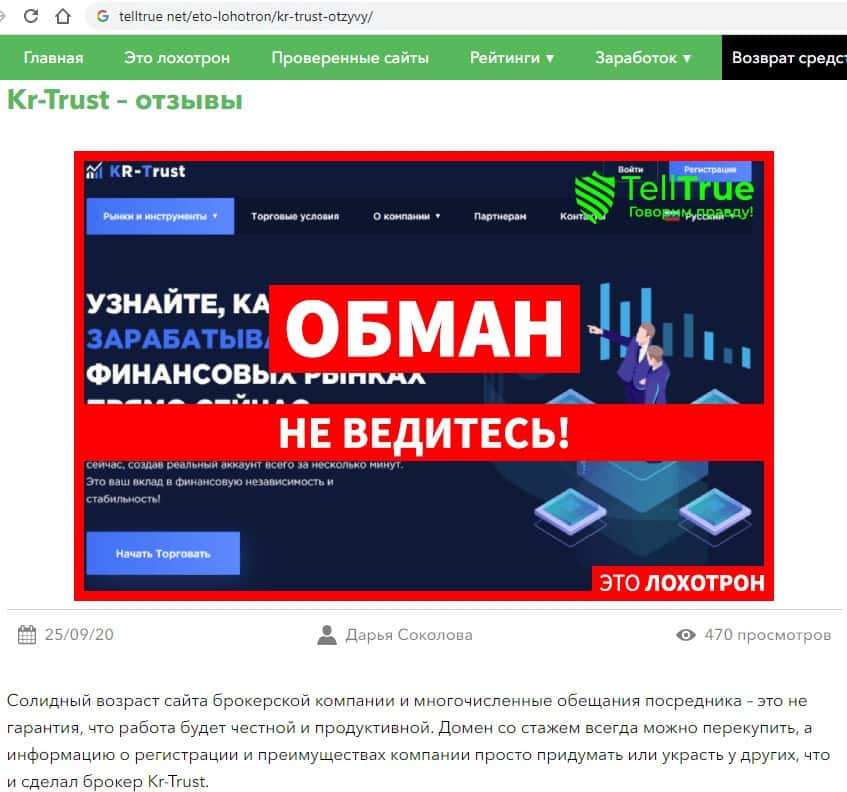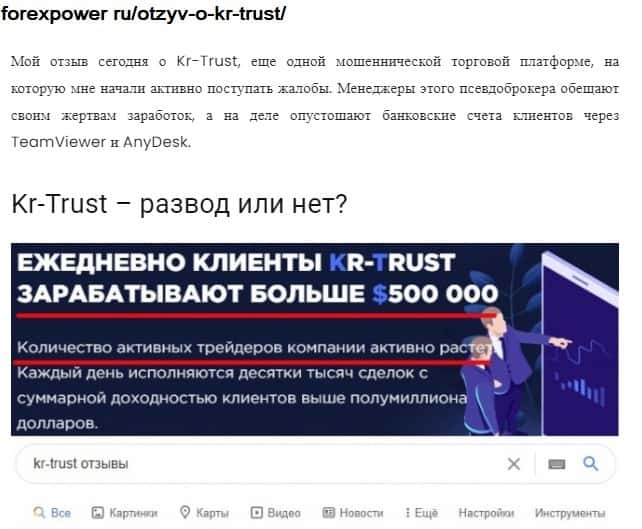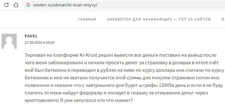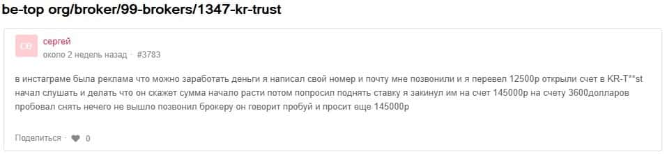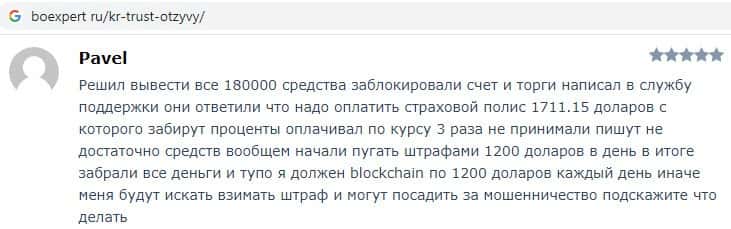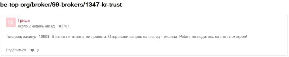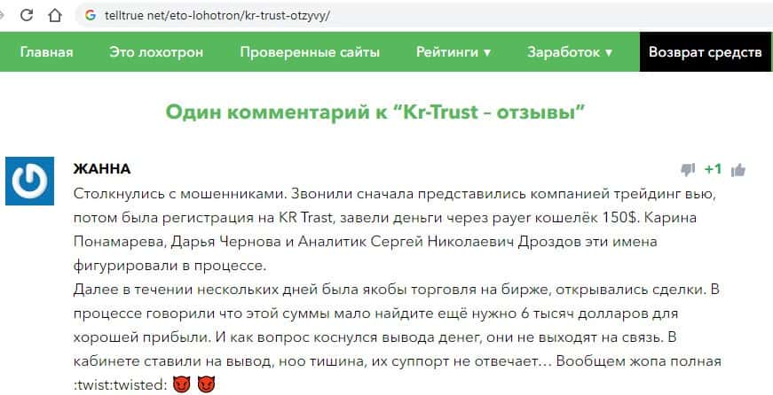 - Мнение о работе мошенников КР Траст на разных сайтах