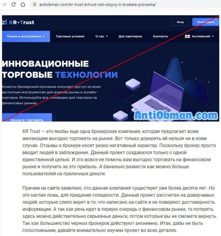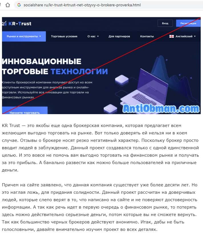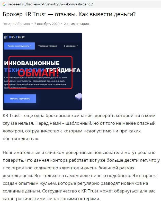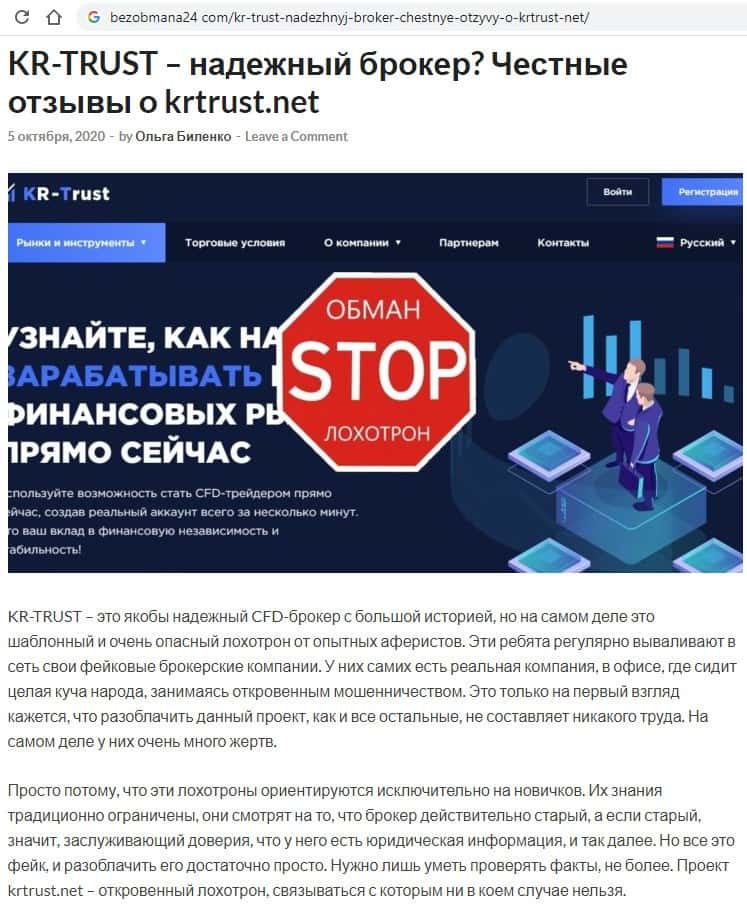 Еще один обзорный сайт в интернете пишет о том, что контора КР Траст - это просто еще один шаблонный сайт в интернете, с которым просто нельзя связываться.