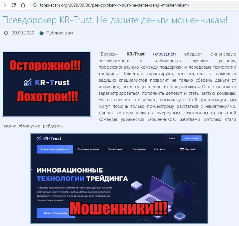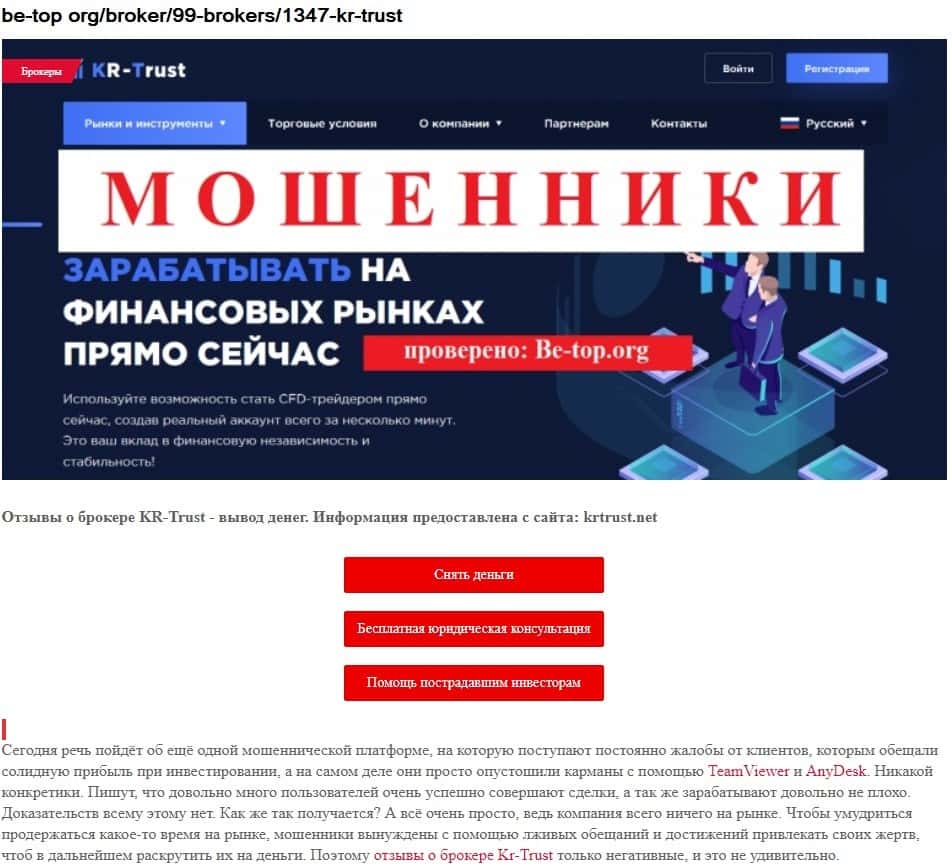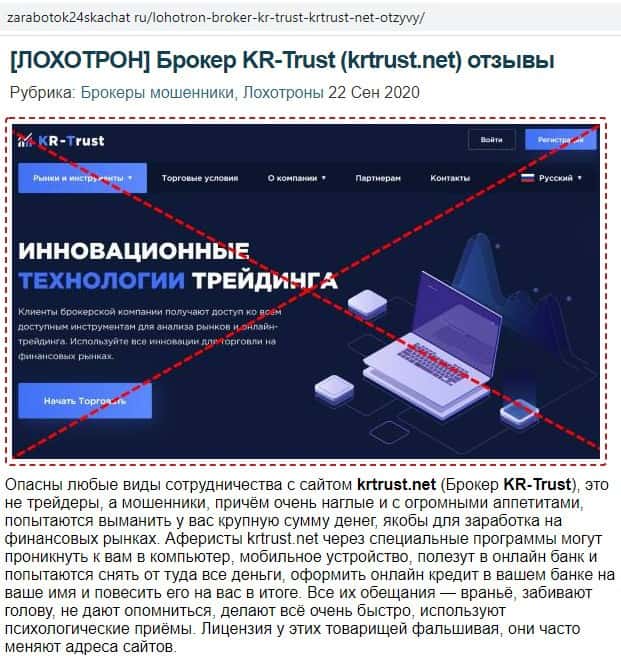- Krtrust net - официальный домен мошенников KRTrust Net