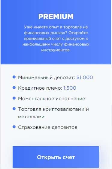Второй тип счета, в который предлагают открыть жулики КР Траст - это PREMIUM. Тут сумма минимального депозита уже составляет 1000$.