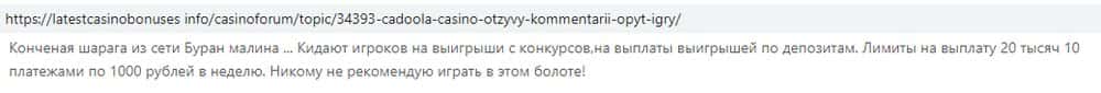 Как сообщают игроки, кидалы Cadoola делают все возможное, чтобы не отдавать игрокам честный выигрыш. Более того, жулики могут списать и оставить себе и личные средства игрока.